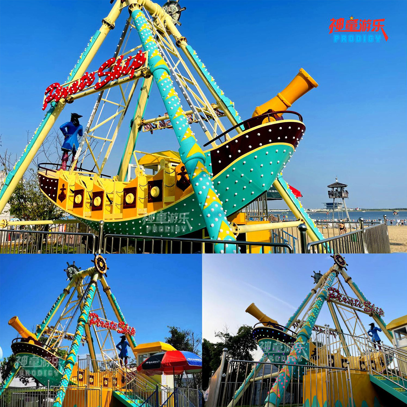 海盜船游樂(lè)設(shè)備是一種繞水平軸往復(fù)擺動(dòng)的大型游樂(lè)設(shè)備項(xiàng)目,海盜船游樂(lè)設(shè)備是因?yàn)槠渫庑畏鹿糯1I船而得名。海盜船啟動(dòng)后從緩慢擺動(dòng)慢慢的急速擺動(dòng),乘客乘坐于海盜船之上,隨著由緩至急的往復(fù)擺動(dòng),猶如蒞臨驚濤駭浪的大海之中,時(shí)而沖上浪峰,時(shí)而跌入谷底,驚險(xiǎn)刺激,挑戰(zhàn)乘客心理承受能力的極限。