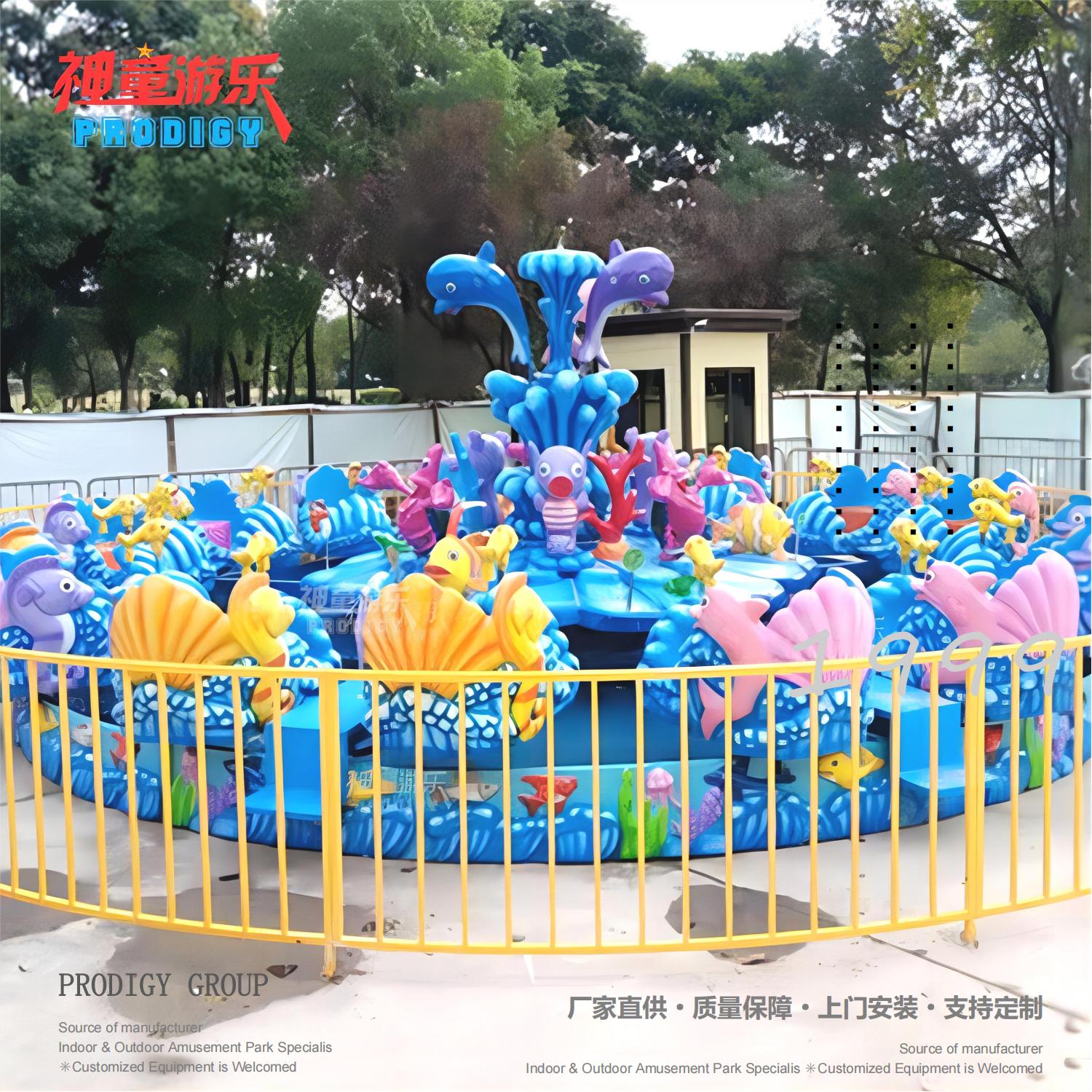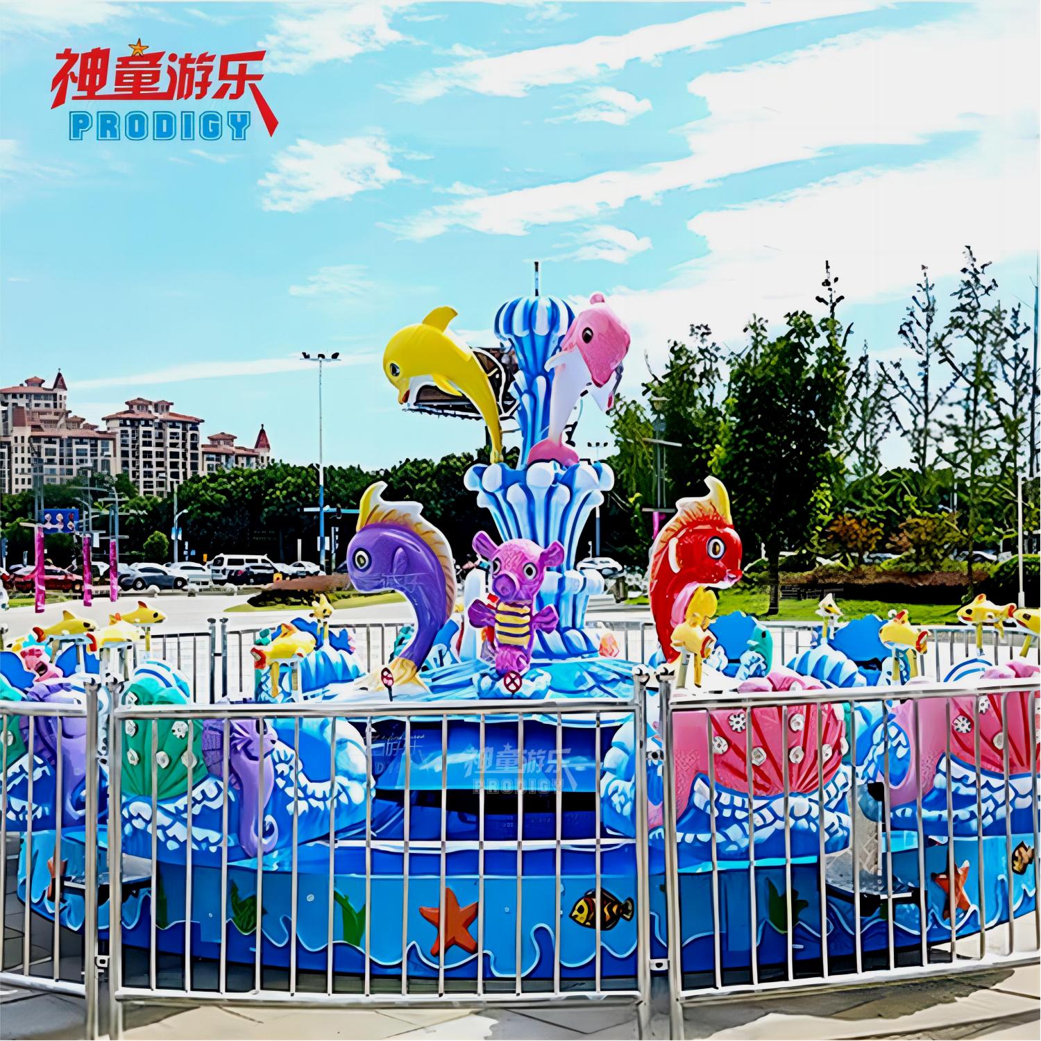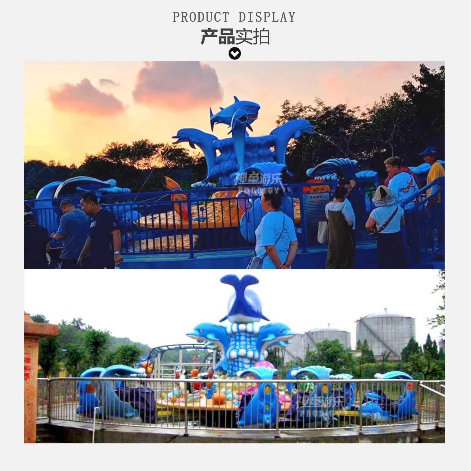 激戰(zhàn)鯊魚島設(shè)備內(nèi)景中間是一個(gè)巨大的鯊魚橫在中間,周邊是四個(gè)小鯊魚環(huán)繞旋轉(zhuǎn)噴水,景觀非常壯觀。圓盤上有些飛魚,烏龜?shù)葎?dòng)物組合成外觀鮮艷炫目的激戰(zhàn)鯊魚島游樂設(shè)備,外觀大氣、色彩明艷動(dòng)人。當(dāng)這款設(shè)備運(yùn)作時(shí),乘客們可以拿起座艙上自帶的噴水槍開始攻擊中間的大鯊魚,互動(dòng)性、客戶體驗(yàn)感非常好。