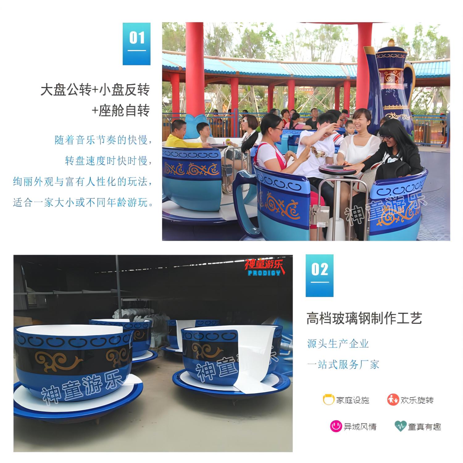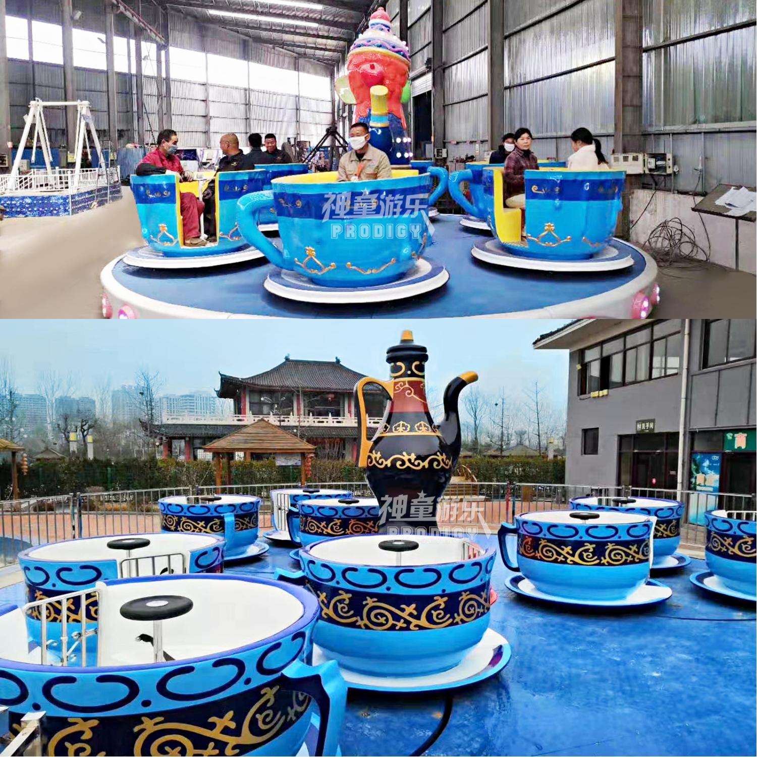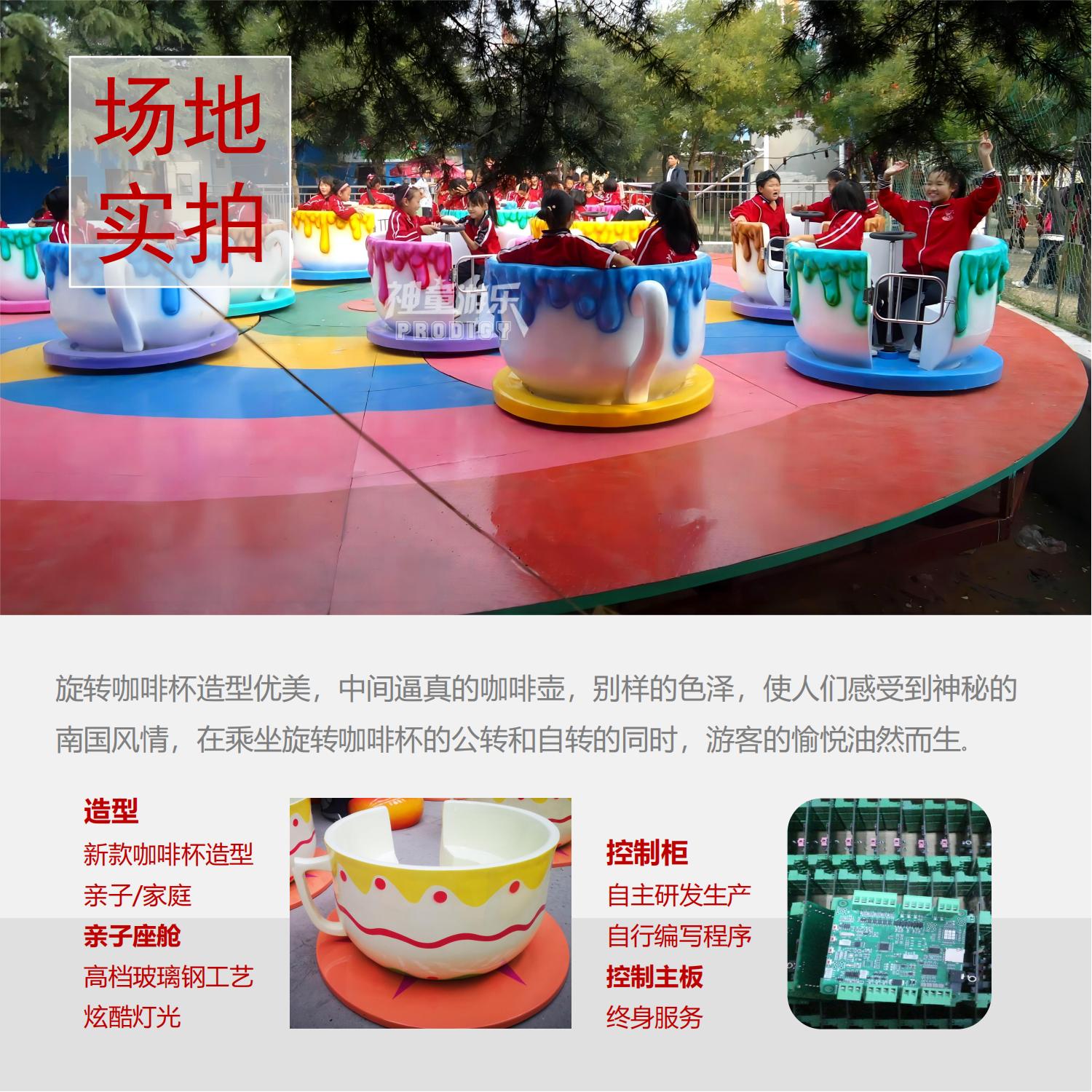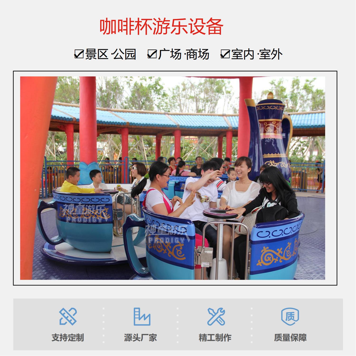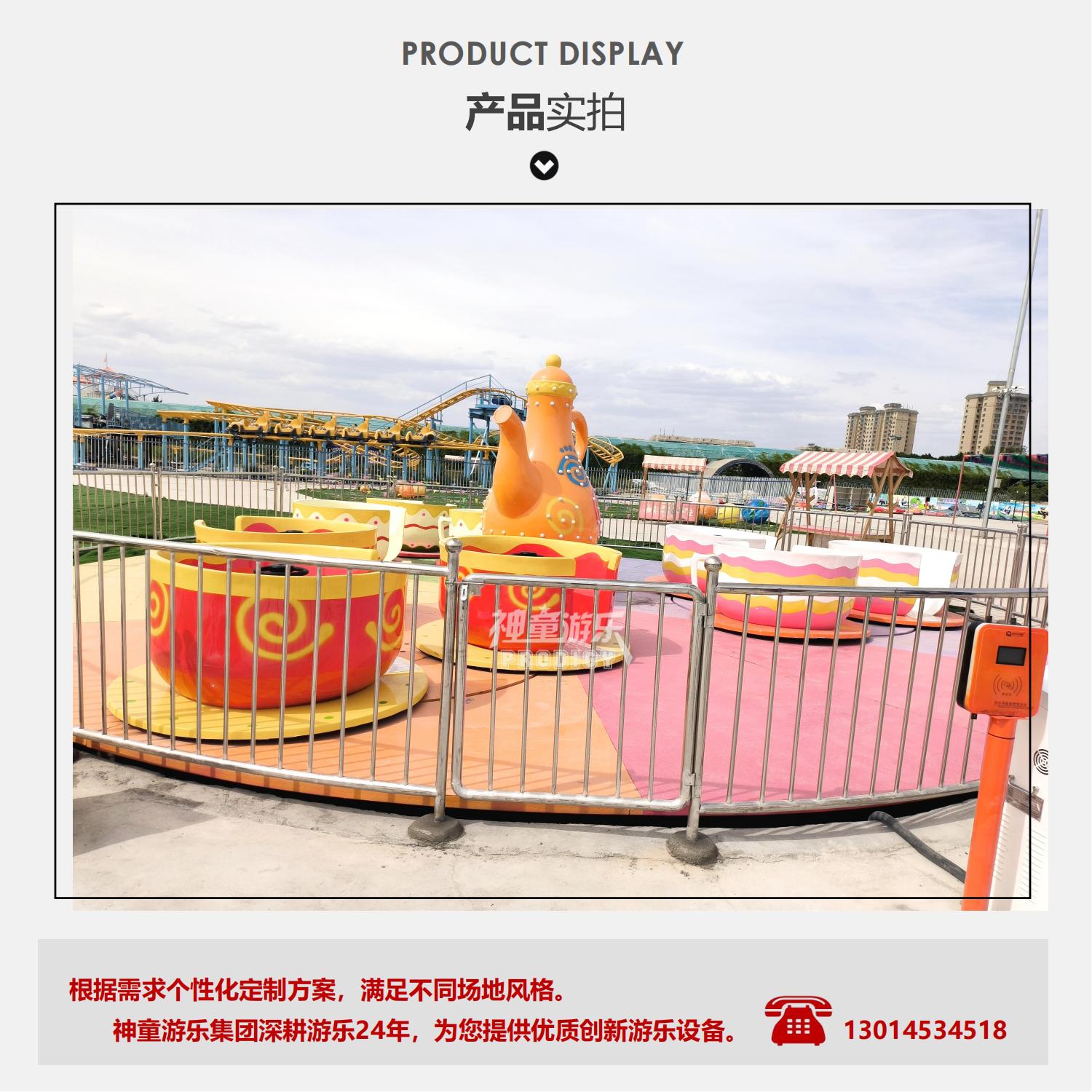 旋轉咖啡杯造型優美,中間逼真的咖啡壺,別樣的色澤,使人們感受到神秘的南國風情,在乘坐旋轉咖啡杯的公轉和自轉的同時,游客的愉悅油然而生。